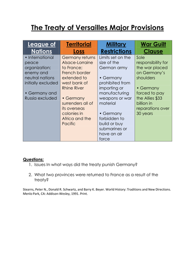 The Treaty Of Versailles Major Provisions Teaching Resources